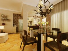 恒盛皇家花園裝修的這個案例在配飾上,金黃色和棕色的配飾襯托出古典家具的高貴與優雅,賦予古典美感的窗簾和地毯、造型古樸的吊燈使整個空間看起來賦予韻律感且大方典雅,柔和的淺色花藝為整個空間帶來了柔美的氣質,給人以開放、寬容的非凡氣度,讓人絲毫不顯局促。