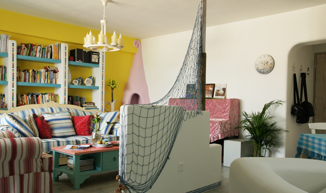 進入設計狀態時,我的想法總是很零碎, 我的首要任務是篩選出有價值的靈感碎片,拼成一幅美麗的藏寶圖, 盡量把設計過程變成簡單有趣的尋寶游戲,扮演好船長角色朝著珊瑚島的方向啟航。 航海途中捕獲的靈感碎片如下: (1)、魔幻,超現實主義。 (2)、小時候看過一本《神秘島》的連環畫。 (3)、潘多拉星球。夏天的尾巴。 (4)、小提琴家David Garrett艷驚四座的《Hes a Pirate》 (5)、讓廚柜的其中一節吊柜變成海浪(為什么廚柜一定就是直的?)。 (6)、格林童話的蠟燭吊燈。《愛麗絲夢游仙境》。 (7)、鬼才畫家享利.馬蒂斯。 (8)、沙發區域做成春暖花開的珊瑚島,面朝餐廳和廚房,連成一片大海。 (9)、讓電視墻變成一艘浮在客廳地面的帆船。 (10)、經常玩的埃及祖瑪游戲,畫面的顏色搭配非常華麗。 (11)、《盜夢空間》第三層夢境。 (12)、方文山的素顏韻腳詩。(寫和畫,同是筆下的智慧。文字可以玩成韻腳詩,為什么設計不能玩成航海詩?)