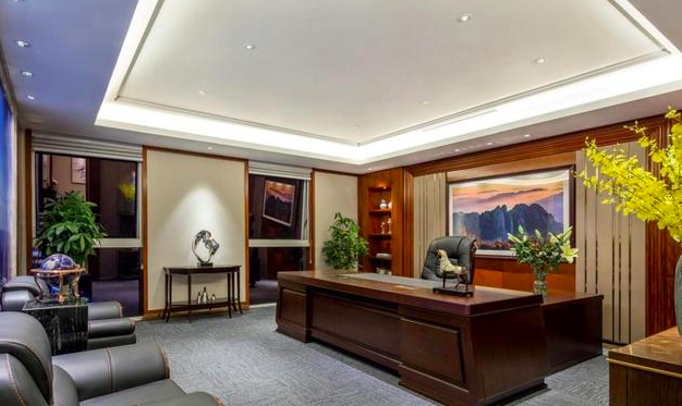 這間辦公室裝修特別的簡約,可能是只是辦公會客談生意,所以沒必要裝修得太過豪華;吊頂只是用了筒燈和燈帶設計,不過當采光已足夠了,空間光線很充足;辦公家具的選擇也很重要,都顯得很穩重,這也是讓人覺得老板是個穩重的生意人,很不錯的搭配,可以推薦給其他老板參考一下。