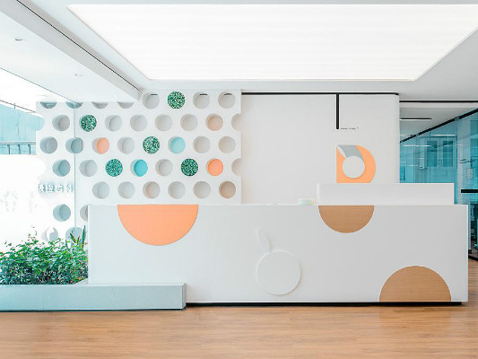 前臺的采光應該充足明亮,才能夠起到亮堂堂的效果。也能給人一種蓬勃向上、積極樂觀的企業形象。